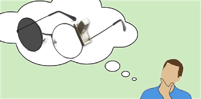 I didn’t want to buy a separate pair of glasses and I couldn’t find an existing solution, but I remembered they sell cheap clip-ons advertised as blocking blue light to reduce eye strain while looking at computer monitors – seemed like they should also block UV, so I figured it was an easy and cheap solution to try.